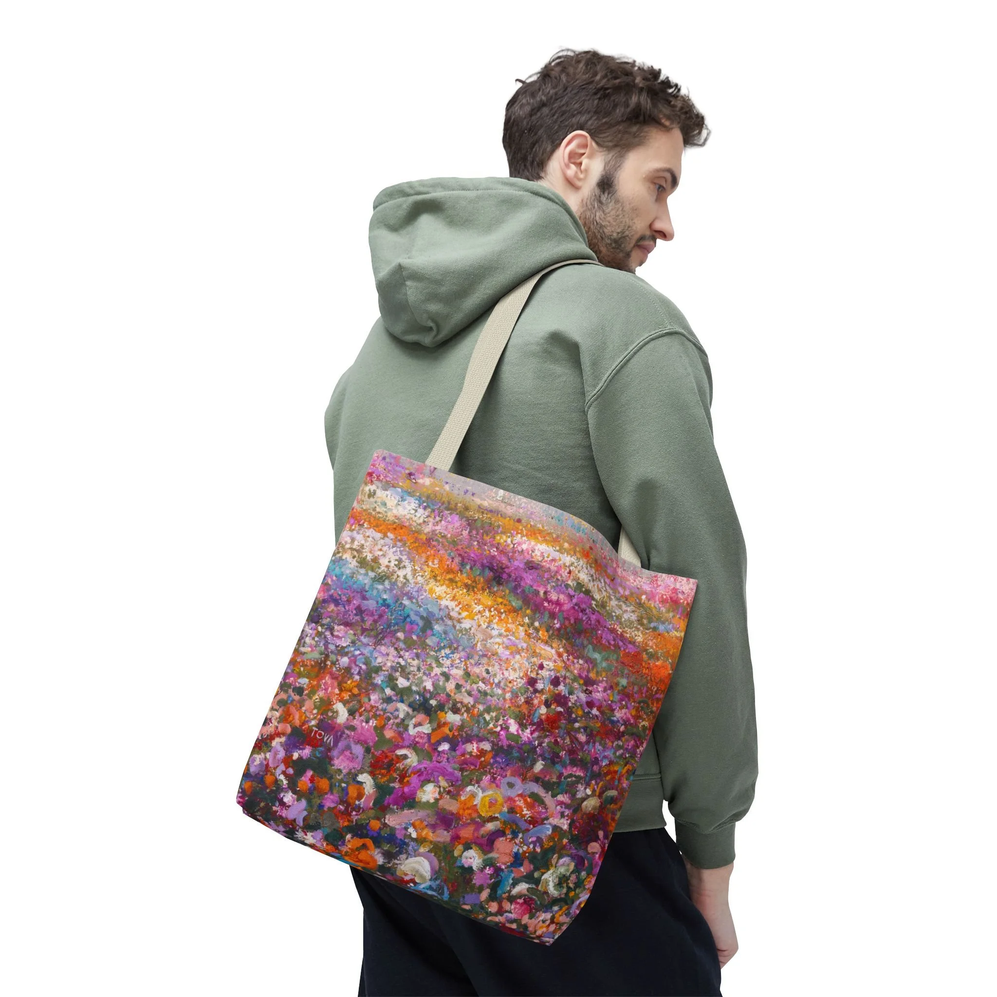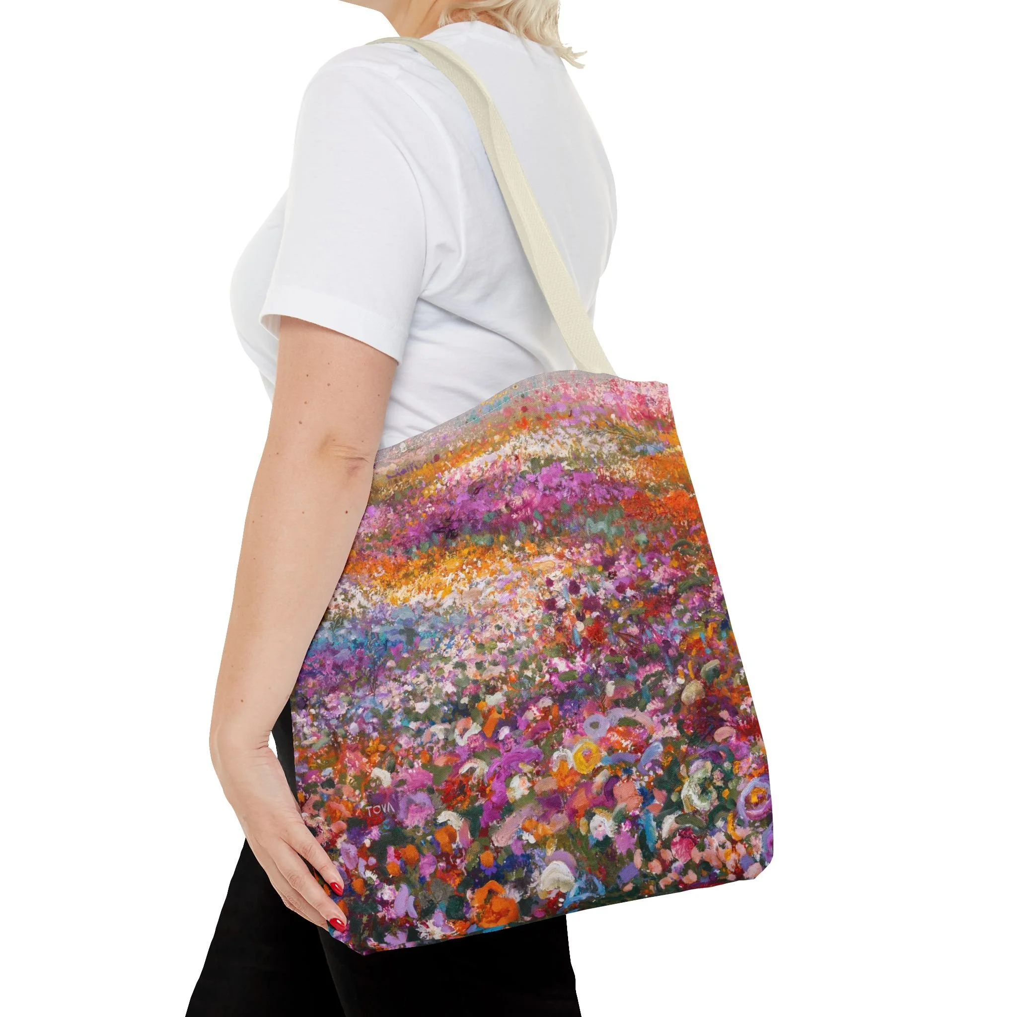 A spacious tote bag to help you carry everything you need. It features a “Black Desert Rose” painting design on both sides.